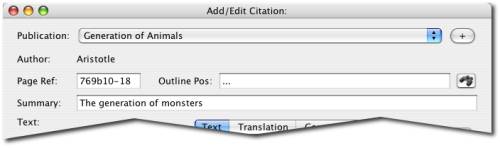 If you want, you can create an outline for the publication, and assign the citation to a location in this outline. For the moment, the only use for outlines is organizing citations upon exporting to RTF format.