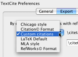 Depending on the bibliographic management software that you use (or if you don't any any at all), you can change the way in which TextCite formats the references attached to the citations that it exports. The formats that TextCite currently supports are the following: